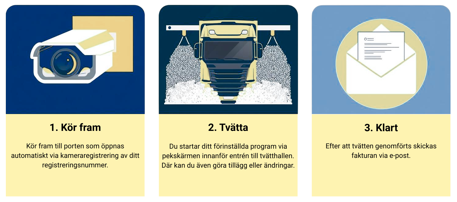 Vid ditt första besök hos Vårgårda Truckcenter registrerar vi dig som kund och skapar ett personligt tvättprogram anpassat efter ditt fordon och dina behov. Det gör varje tvätt effektiv, skonsam och enkel.